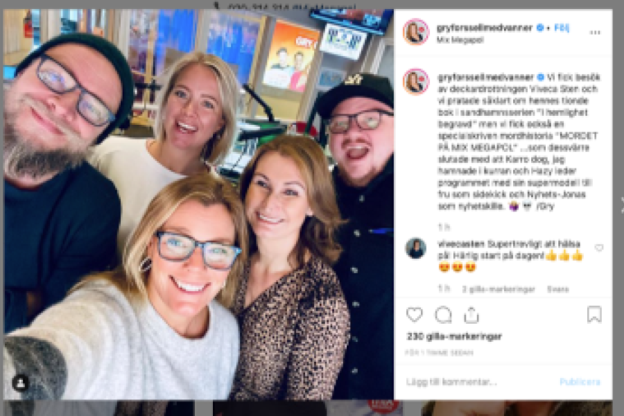 Viveca gästade Mix Megapol den 5 november och presenterade även en mordgåta; Mordet på Mix Megapol